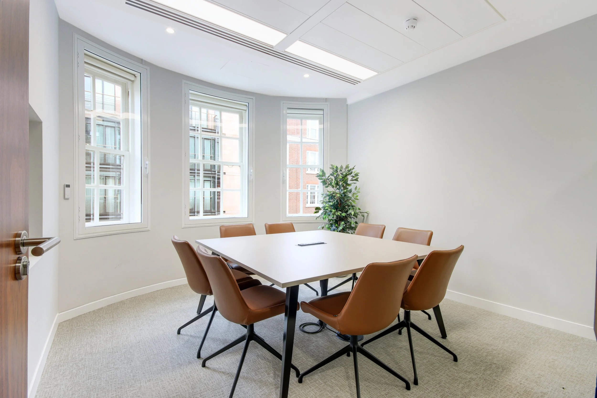 A palette of greige walls, leather accents, soft textures and generous planting brought warmth and character to the space, creating an inviting and ready-to-use workspace ready for its next tenant to move straight into.