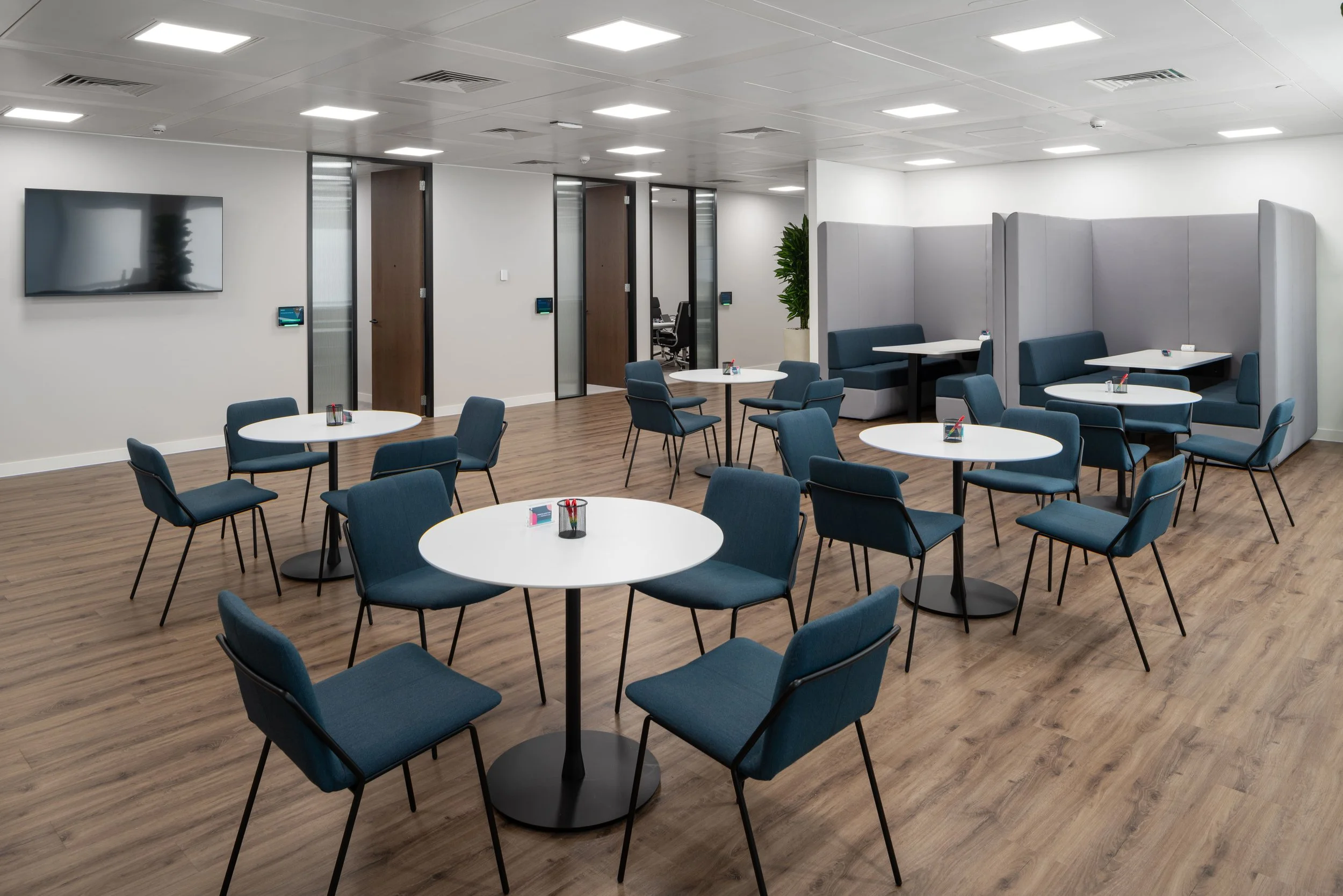 We delivered a full Cat B fit-out for Probitas, transforming 12,000 sq ft of prime London office space into a dynamic and future ready workspace. The design focused on creating a collaborative environment that reflects Probitas’ professional identity while promoting employee wellbeing and productivity. The project included a mix of open-plan desking, private offices, high-spec meeting rooms, and inviting breakout zones.