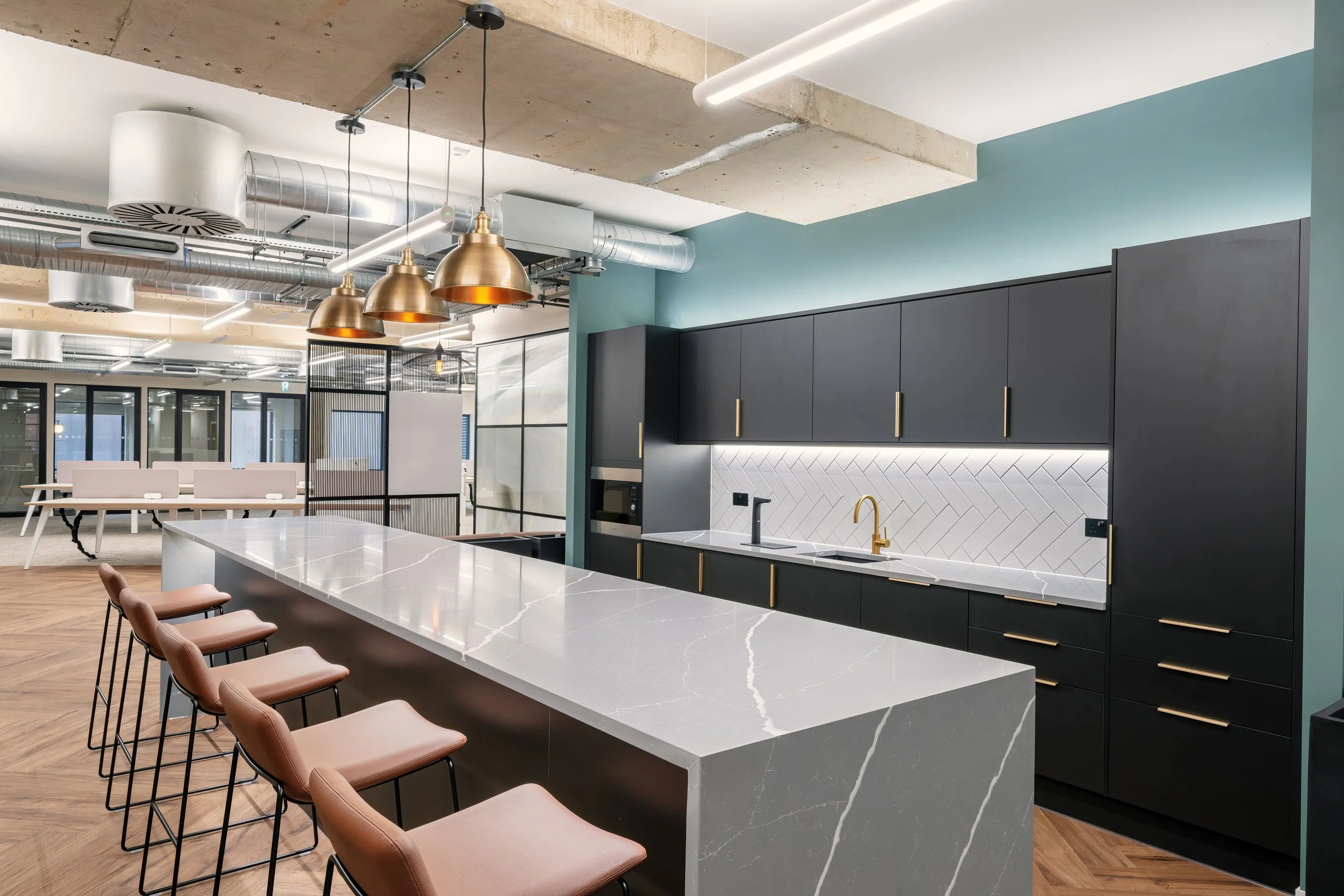 A full Cat A+ fit-out transformed this first-floor space in Farringdon into a bright, flexible environment with exposed services, greenery, bespoke joinery and contemporary finishes. The layout was formed around a central teapoint/ breakout with a series of chat and meeting rooms islands within the large space. Teams call rooms were provided with flexible open plan desking. The space was so attractive it was let to an IT company before completion. The Ground reception was upgraded and improved to make it more welcoming and help with the letting of floors.